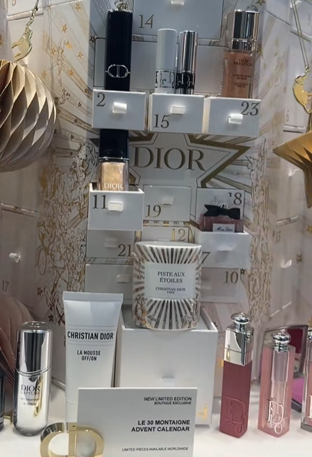 Derrière sa façade inspirée du mythique 30 avenue Montaigne, chaque case dévoile un instant d’enchantement : parfums emblématiques, maquillage couture, soins prestigieux et une bougie parfumée — 24 trésors en miniature pour savourer chaque jour jusqu’à Noël.